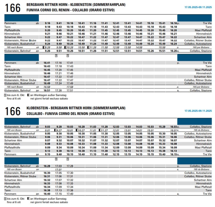 Wir treffen uns um halb 10 Uhr bei der Talstation der Bergbahn Rittner Horn (geöffnet 9-17.30 Uhr) in Pemmern.